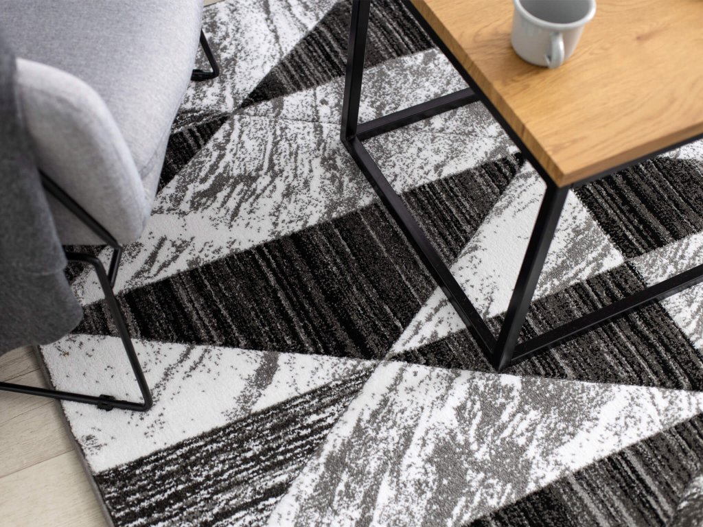 Obogatite svoj dom z elegantno preprogo Trigon s sivo-črnim dizajnom. Ta preproga dodaja estetski čar, pa tudi praktično korist. Nudi topel udobje za vaša stopala in izboljšuje akustiko prostora, absorbira zvoke in odpravlja odmev. Njegov tridimenzionalni geometrijski vzorec ustvarja fascinanten vizualni učinek, kar naredi vaš interier edinstven in stilski prostor. Izdelan je iz 100% polipropilena, kar pomeni, da je odporen proti obrabi in prenese obremenitve vsakodnevne uporabe, pri tem pa ohranja svojo naravno eleganco. Preproga Trigon je idealen dodatek za dolge hodnike, kuhinjo ali dnevno sobo, s čimer vašemu domu dodaja ne le slog, ampak tudi maksimalno udobje.