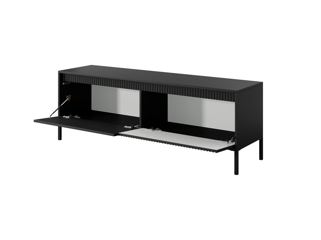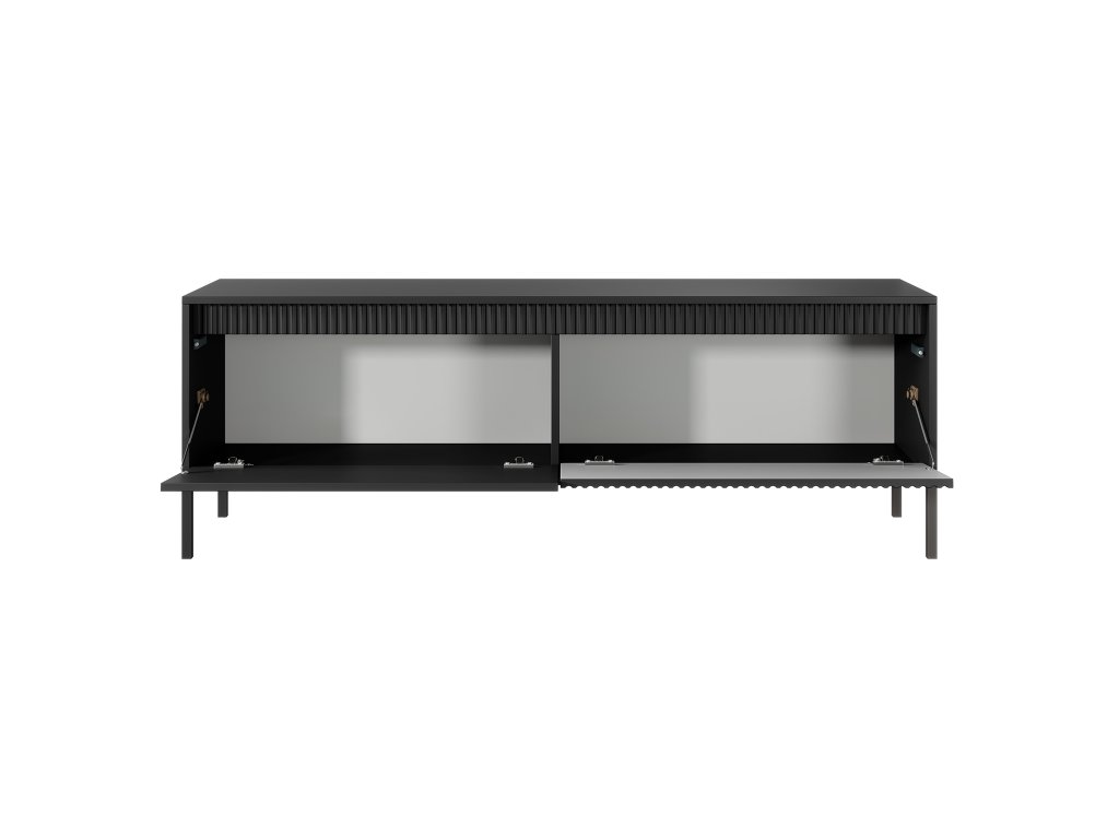 Televizijska omarica SENSO D RTV153 bo prinesla v vaš dnevni prostor stilski in eleganten pridih. Črna zasnova skupaj s tankimi kovinskimi nogami zagotavlja moderen videz in stabilnost. Omarica je opremljena z dvema omaricama s sistemom odpiranja s pritiskom, kar omogoča enostaven dostop do vaših stvari. Dve omarici nudita dovolj prostora za televizijsko tehniko in dodatno opremo. Izdelana je iz kakovostne laminirane plošče z ABS robovi, kar zagotavlja odpornost in trajnost. Ta moderna TV omarica je idealna rešitev za tiste, ki iščejo stilsko, praktično in zanesljivo pohištvo za svojo dnevno sobo.