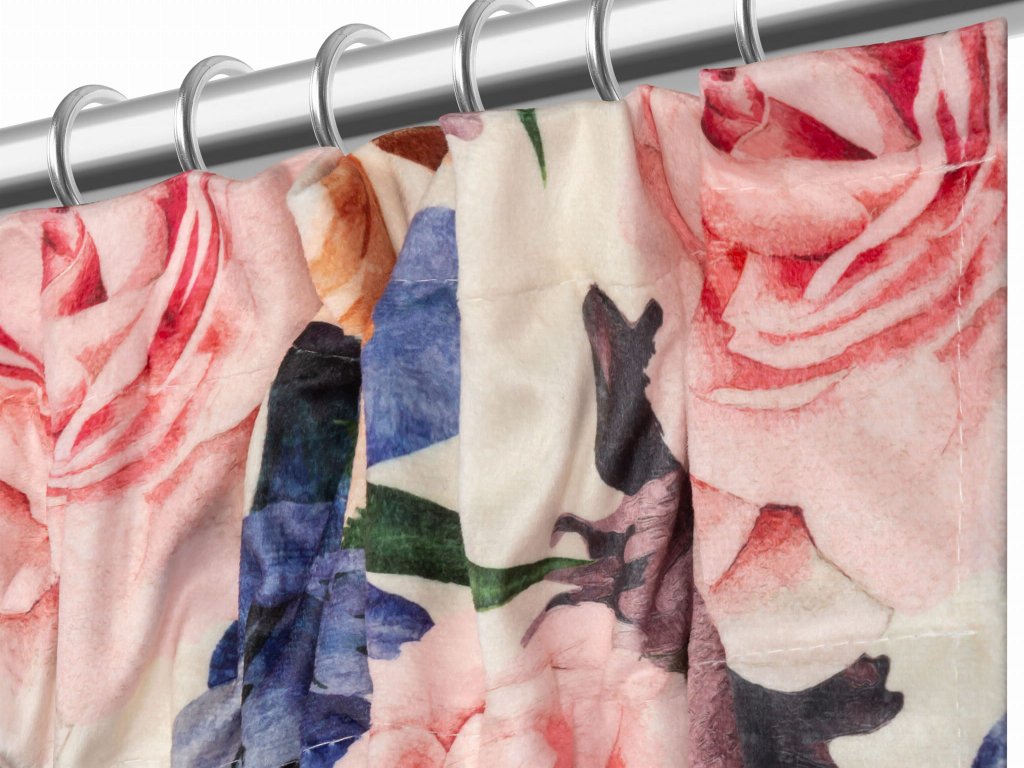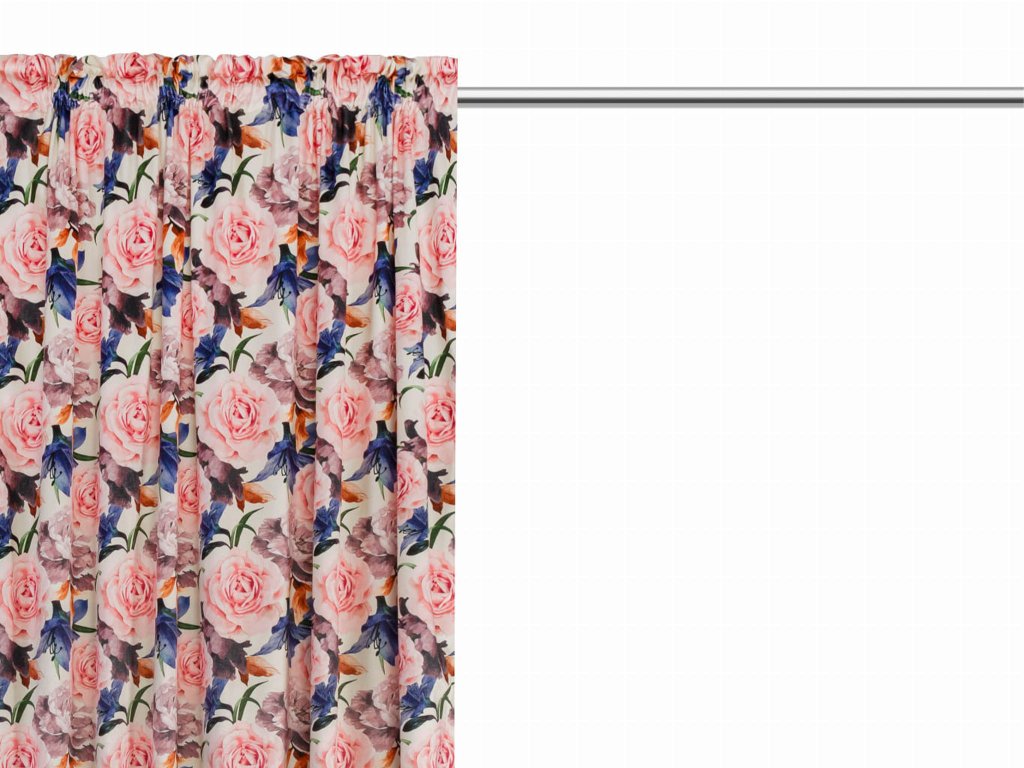 Končana zavesa Florry vas bo očarala z romantičnim vzorcem vrtnic. Izdelana je iz nežne žametne tkanine, ki prostoru zagotavlja poltemni učinek, hkrati pa lahko zatemni do 80 % svetlobe. Ta roza zavesa vsebuje 8 kromiranih srebrnih obročkov s premerom 4 cm, ki omogočajo enostavno in hitro obešanje.