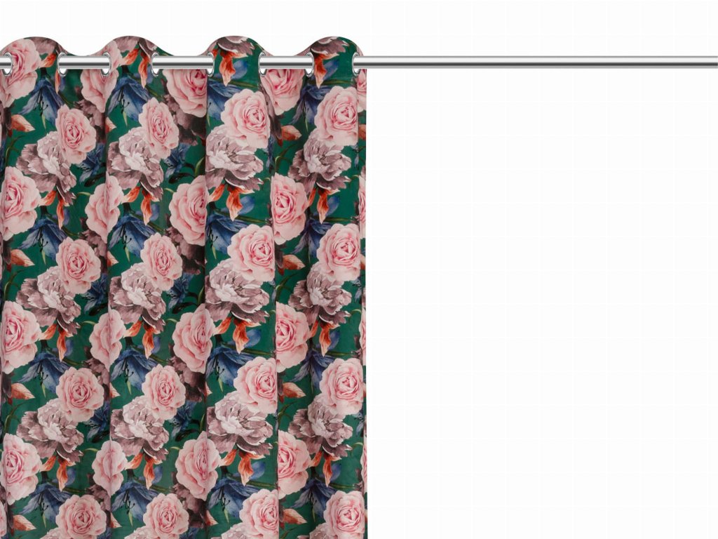 Zavesa Florry izstopa s čudovitim cvetličnim vzorcem vrtnic. Ta roza zavesa je izdelana iz kakovostne žametne tkanine, ki ne le da prostoru doda eleganco, ampak tudi zagotavlja poltemni učinek do 80 %. Zahvaljujoč 8 kromiranim srebrnim obročkom s premerom 4 cm se enostavno obesi in prilagodi vsakemu tipu okna. Lahko jo uporabite kot zaveso za kuhinjo, zaveso za dnevno sobo, zaveso za okno in podobno.