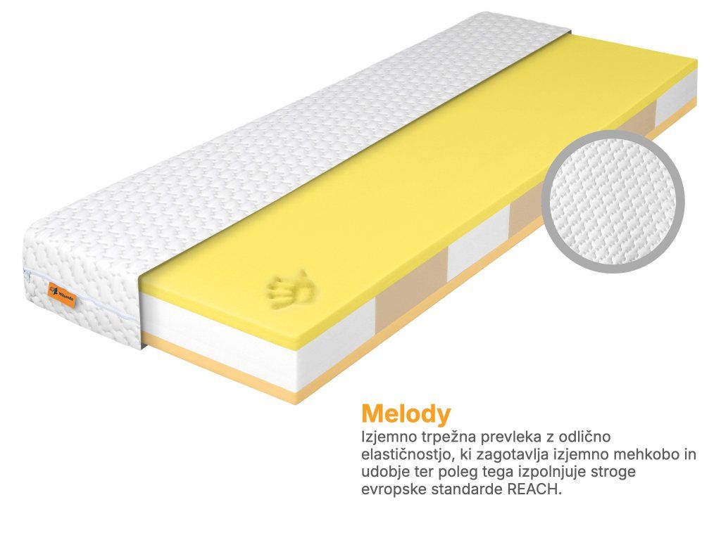 Sestava materiala: PUR pena, hladna HR pena, spominska Visco pena, prevleka Melody