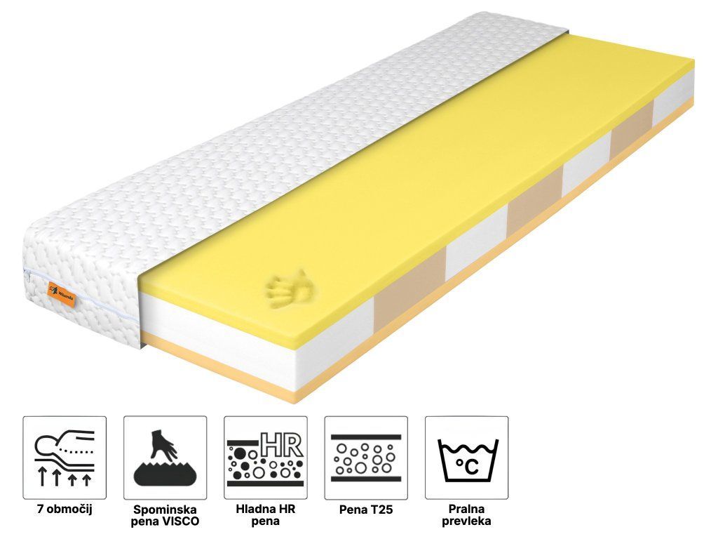 Sestava materiala: PUR pena, hladna HR pena, spominska Visco pena, prevleka Melody