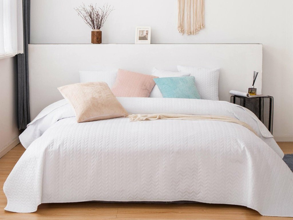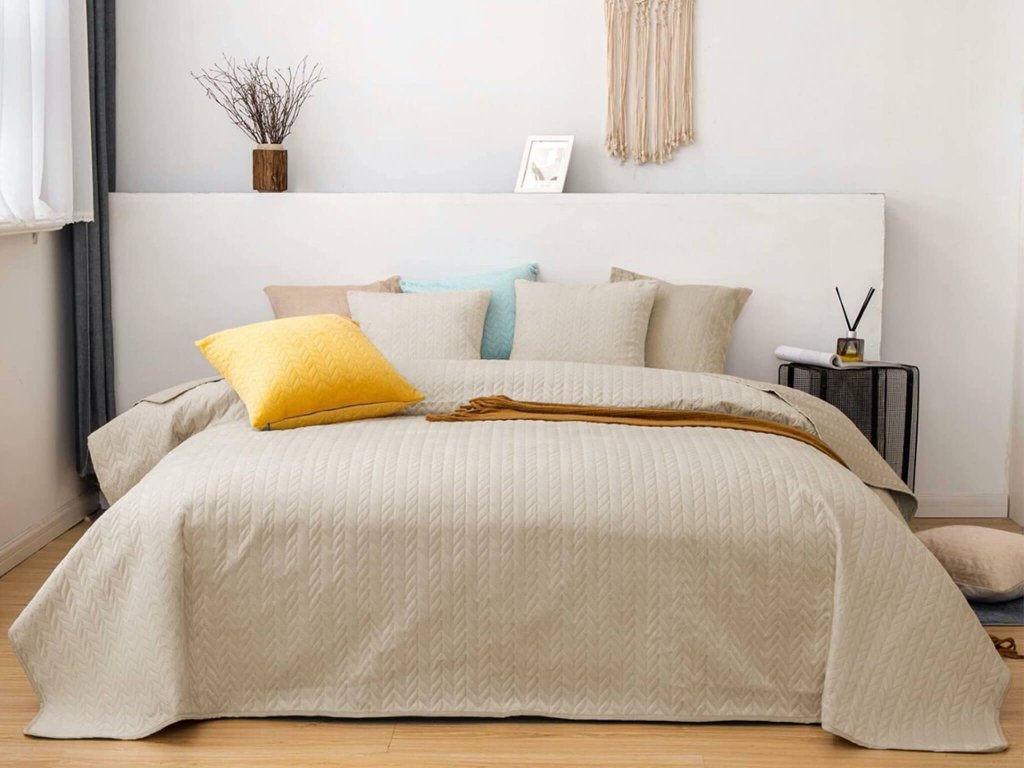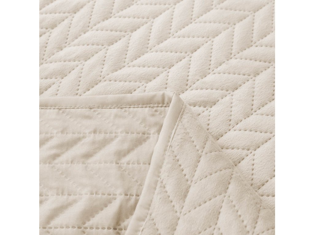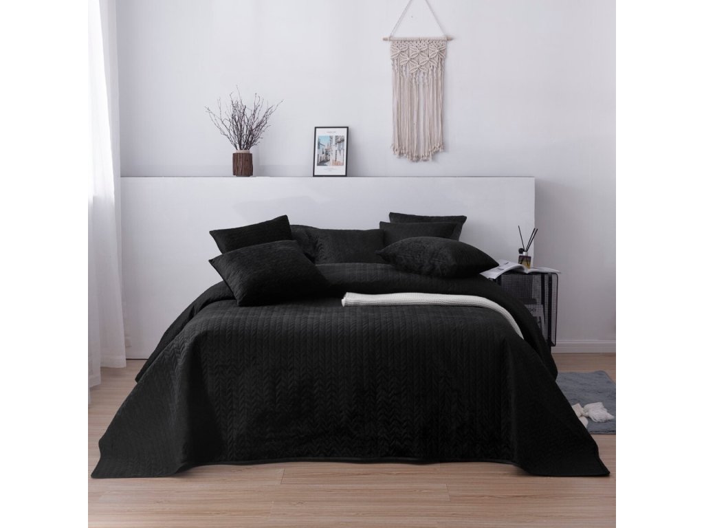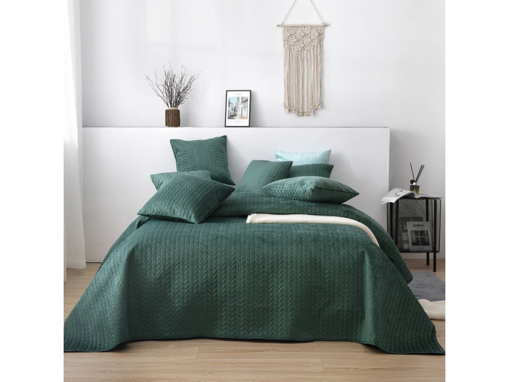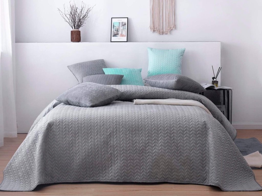 Čudovita žametna pregrinjala za posteljo so izdelana iz 100% poliestra in napolnjena s plastjo netkanega tekstila. Odeja ima estetsko prešivanje, ki je zelo trdno in se med uporabo ne razpade. Ne samo, da je čudovit dekorativni element v spalnici, ampak tudi ščiti posteljnino pred umazanijo in prahom. Pregrinjalo je obojestransko. Zgornja stran je eleganten, plišast žamet in spodnja stran je izdelana iz gladkega mikrovlaken. Odeja ima enak vzorec na obeh straneh. Očarala vas bo s svojo mehkobo. Pregrinjalo za enojno posteljo je mogoče prati na 30° C in likati do 100 ° C. Ne sme se beliti in sušiti v avtomatskem sušilniku.