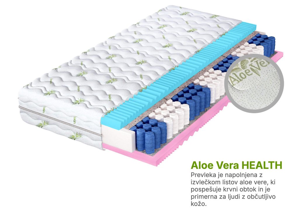 Njegove žepkaste vzmeti s 7 conami zagotavljajo optimalno podporo za posamezne dele telesa, s čimer se zmanjšuje pritisk na vrat, hrbtenico in sklepe. Ustvarja edinstveno in prilagodljivo spalno okolje za vsakega posameznika.Na vzmetnici je uporabljena poliuretanska PUR pena T25. Naravni filc, ki ločuje vzmeti in peno, povečuje trdnost vzmetnice in tudi njeno življenjsko dobo. Nežen dotik in hipoalergene lastnosti prevleke z Aloe Vera, ki je znana po svojih blagodejnih učinkih na kožo in antialergijskih lastnostih, zagotavlja neprekosljivo udobje in čistočo. Vaša vzmetnica je lahko vedno čista in sveža zahvaljujoč možnosti pranja prevleke v pralnem stroju do 30 stopinj.
