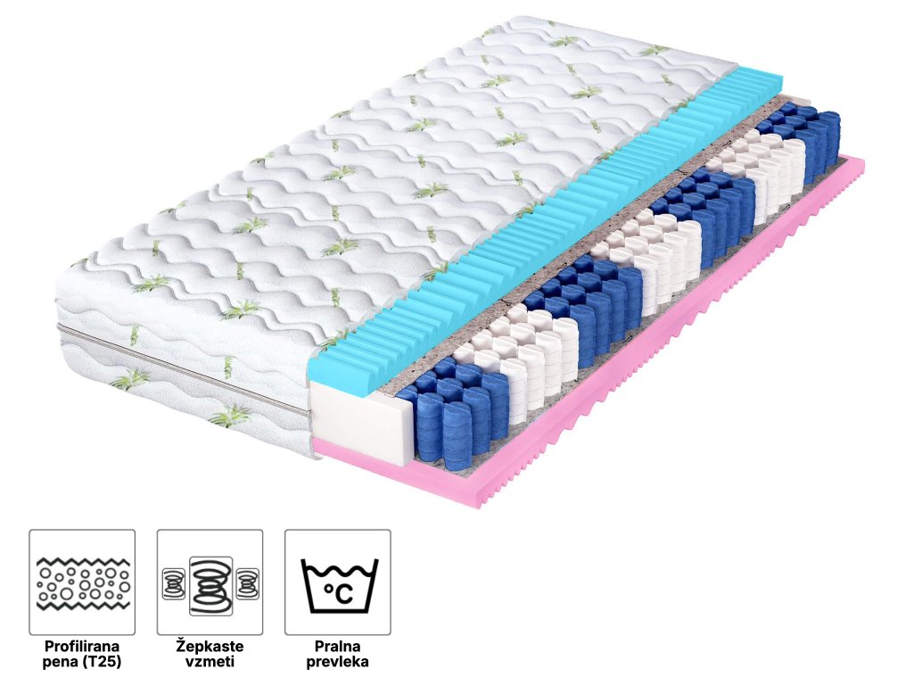 Materialna sestava: Filc, NanoHARD žepkaste vzmeti, Poliuretanska PUR pena T25, Prevleka