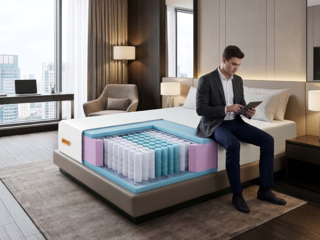 Ta hotelska vzmetnica je idealna za hotele, penzione in nastanitvene objekte z visoko obiskanostjo gostov. Za B2B partnerje ponujamo možnost personalizacije: individualno izbiro materialov, izdelavo atipičnih dimenzij ali posebne prilagoditve glede na vaše potrebe. Kontaktirajte naš B2B tim in pripravili bomo rešitev točno po meri.
