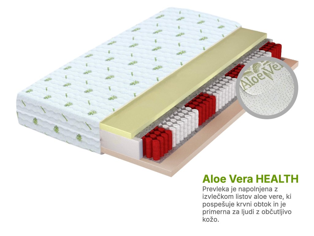Materialna sestava: Spominska pena Visco, Filc, Multipocket NanoHARD, Poliuretanska pena, Prevleka