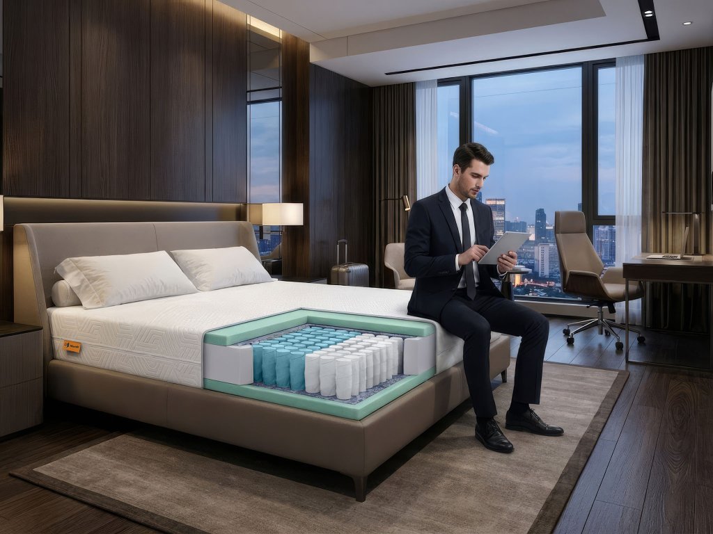 Ta hotelska vzmetnica je idealna za hotele, penzione in nastanitvene objekte z visoko obiskanostjo gostov. Za B2B partnerje ponujamo možnost personalizacije: individualno izbiro materialov, izdelavo nestandardnih dimenzij ali posebne prilagoditve glede na vaše potrebe. Kontaktirajte naš B2B tim in pripravili bomo rešitev po meri.